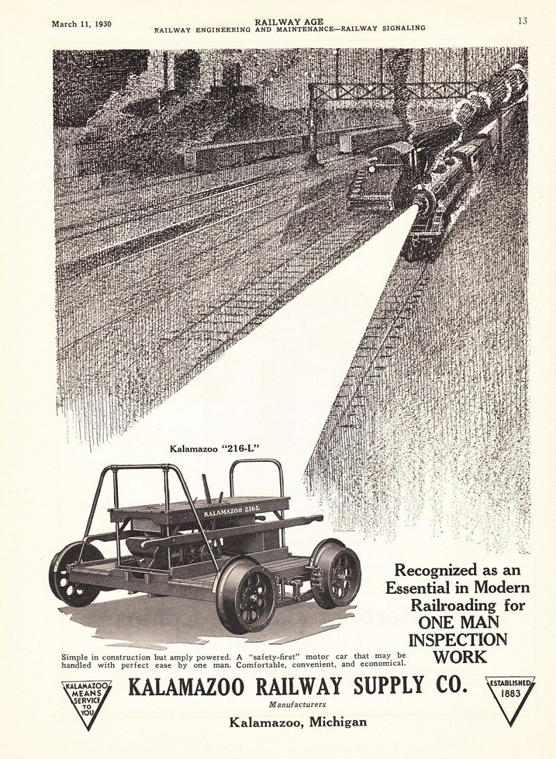 A 1930 Advertisement in "Railway Age" for the Model 216-L Motor Car